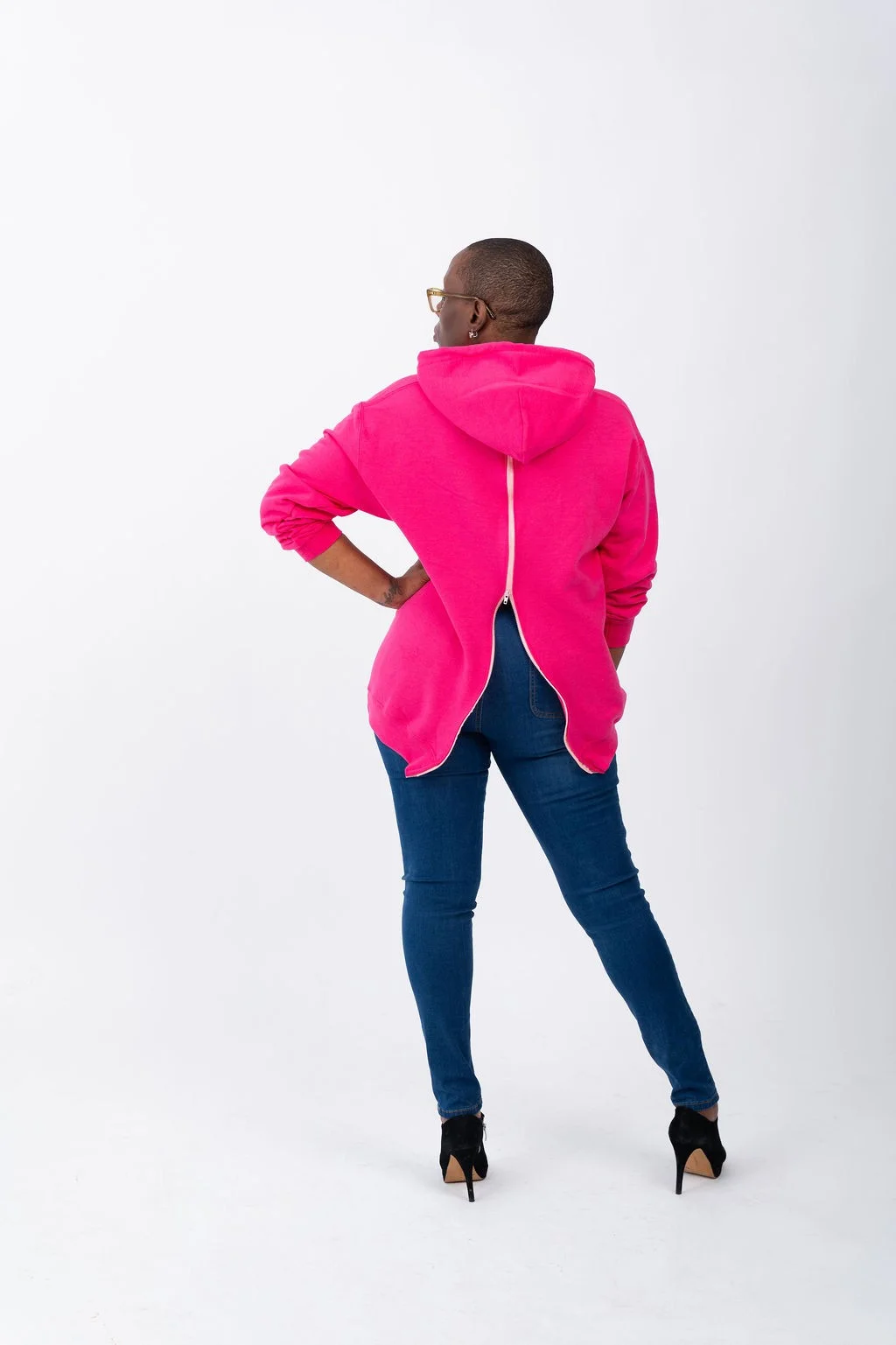Add this distinctive hoodie to your wardrobe and enjoy both comfort and individuality in one garment.Stand out in comfort and style with the ΔΨΡ Pink Back-Zip Hoodie. This bold hot-pink hoodie features the Delta Psi Rho Greek letters on the front and a dramatic full-length zipper down the back—perfect for adding flair, ventilation, and versatility. Soft, cozy, and designed for a flattering relaxed fit, it’s ideal for sorors who love fashion with personality.