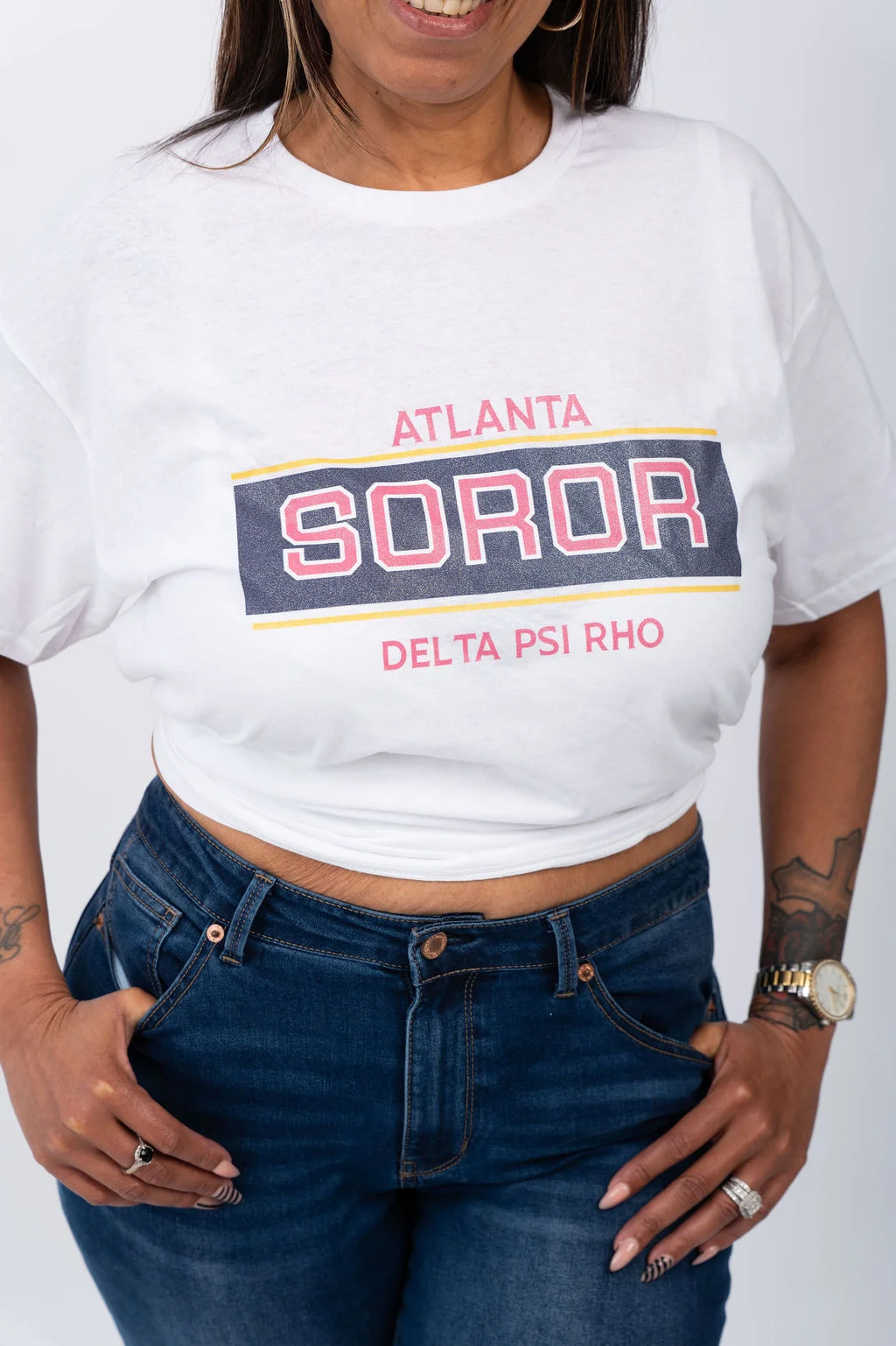 - White Soror T-Shirt – A classic white tee featuring the city of your chapter, designed for unity and group moments.