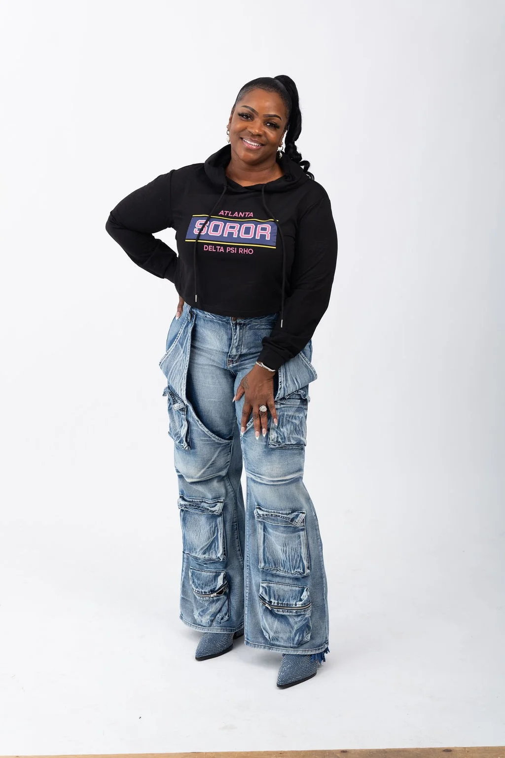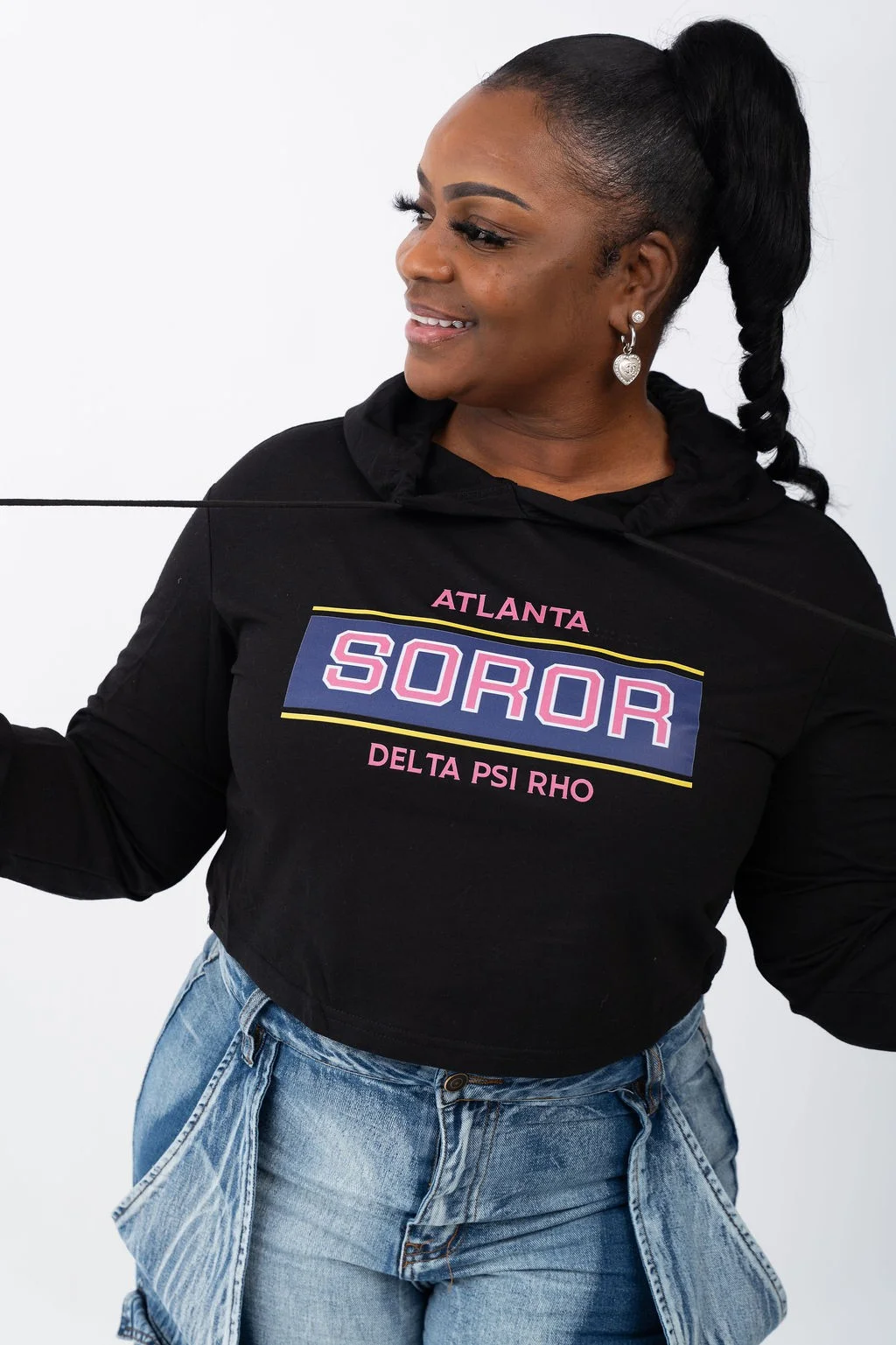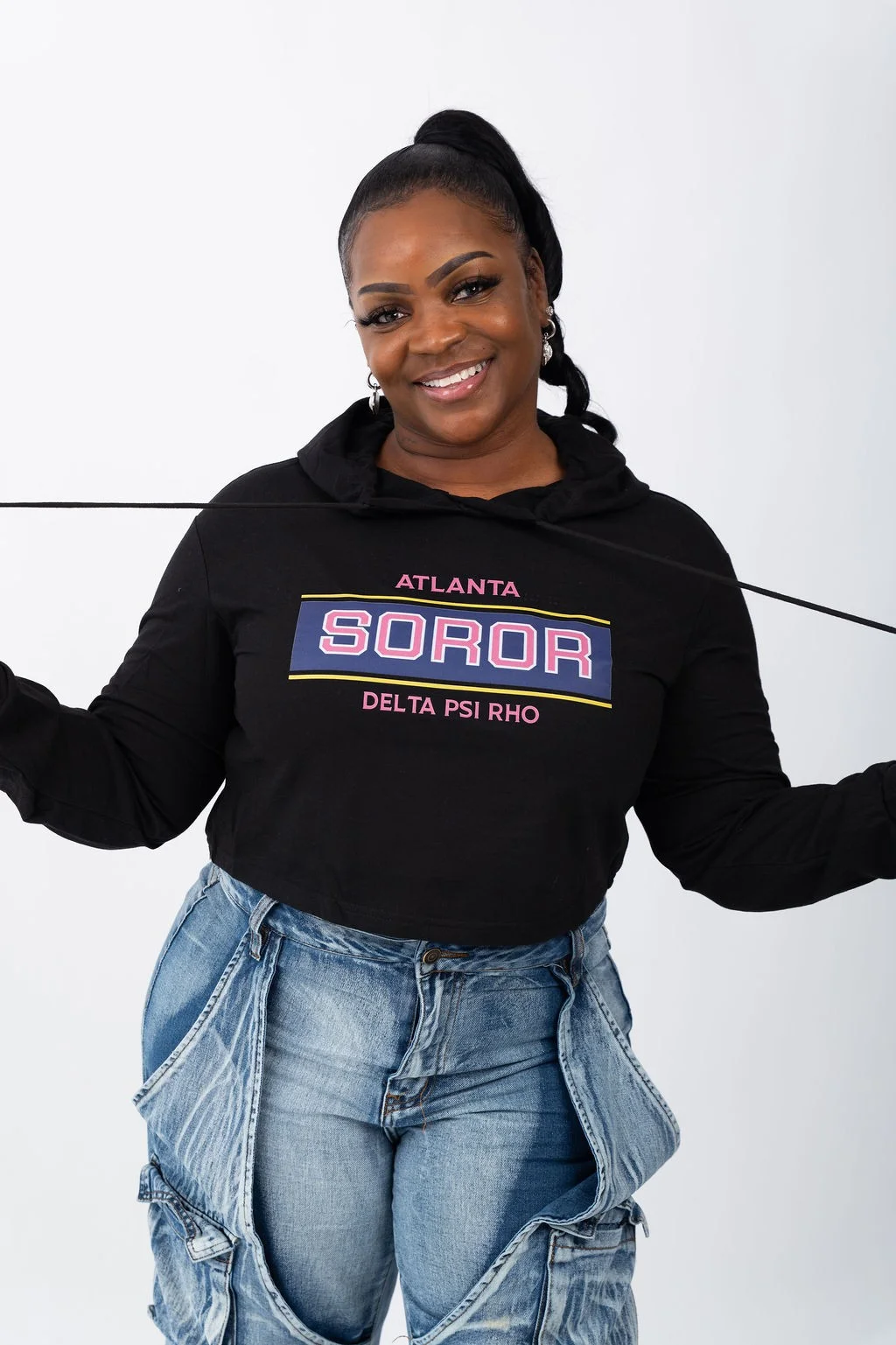 The DELTA PSI RHO Crop Hoodie in black combines style, comfort, and customization to create the perfect casual wardrobe staple. Made from premium materials, this hoodie offers a soft and durable feel designed for long-lasting wear. Its comfortable fit makes it suitable for everyday activities, while the customizable design allows you to proudly represent your city and fraternity. Featuring a modern cropped cut, it’s a versatile piece that pairs effortlessly with your favorite jeans or activewear. Elevate your wardrobe with this unique and personalized hoodie.